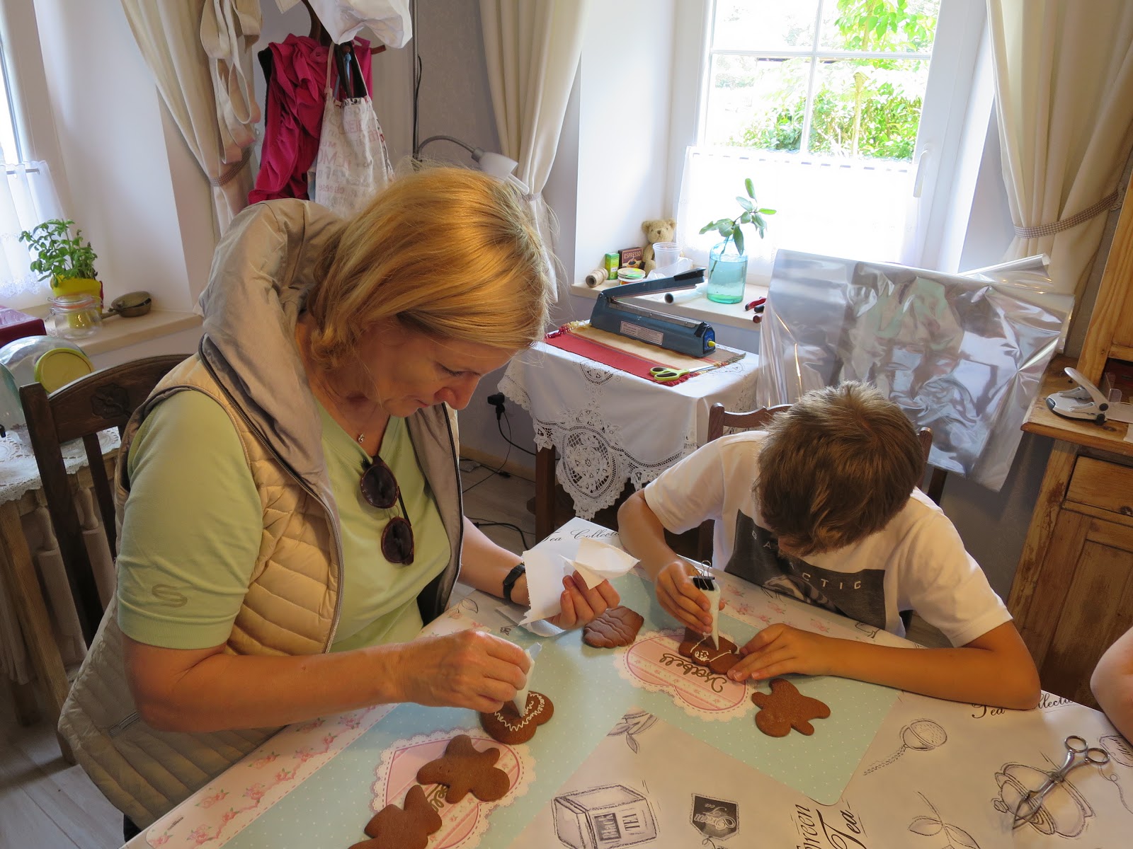 Zaczynamy od wizyty w piernikowej pracowni w Czerniawie Zdroju, gdzie mocno skupieni uruchamiamy wyobraźnię i talenty dekoracyjne słuchając przy tym opowieści o piernikowych tradycjach, przyprawach, o dawnej kuchni i stylu życia. Jedni z nas skupieni bardziej na słuchaniu, inni na dekorowaniu. Ważne, że po ponad godzinnym spotkaniu wychodzimy z własnoręcznie udekorowanymi, smakowitymi piernikami i odrobinę większą porcją wiedzy o dawnej polskiej kuchni. Ogród piernikowej zagrody dał jeszcze jedną frajdę i możliwość przeniesienia się w świat Harrego Pottera. Kilka wierzbowych mioteł niczym Quidditch pozwalało niektórym chociaż na chwilę oderwać się od trawy.